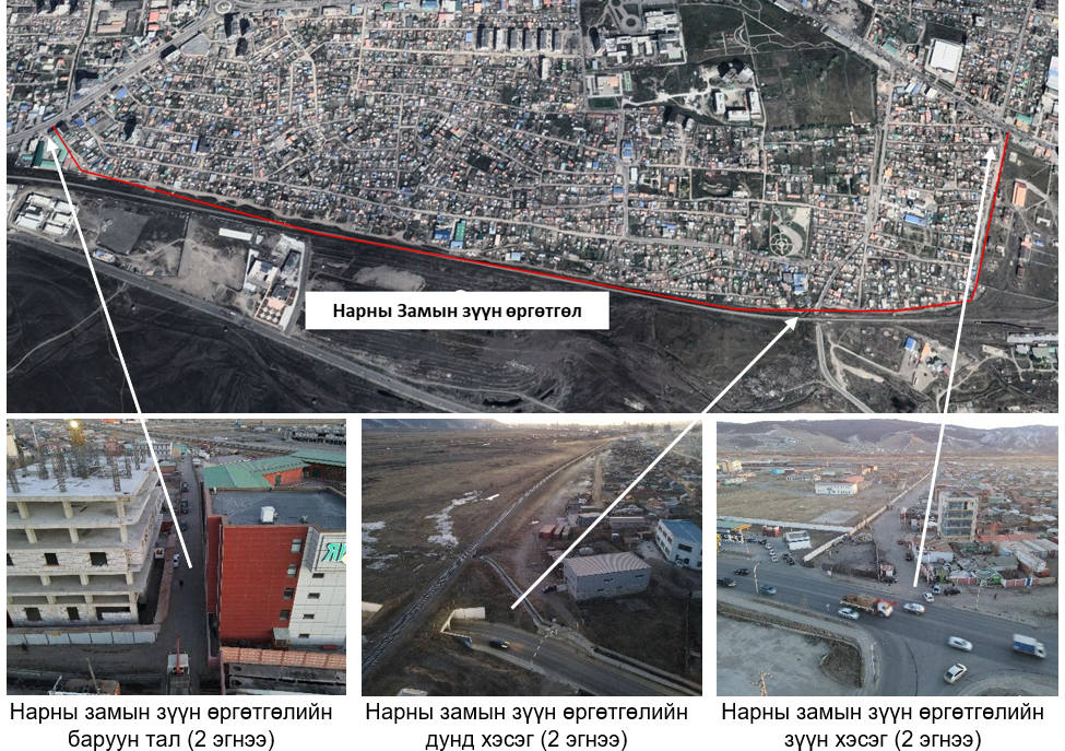 Баянзүрх дүүргийн 12, 37-р хороодын нутаг дэвсгэр, Нарны замын зүүн захаас Амгалан хотхоны уулзвар хүртэлх 5.6 км замыг иж бүрэн гудамж концепцын хүрээнд шинээр барих ажлын зураг төсөл хийгдэж байна.