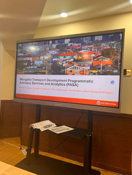 Зураг 3. 2023.12.06 Хотын удирдах албан тушаалтнуудад хотын тээврийн тогтвортой төлөвлөлтийн зорилтын хүрээнд PASA-ийн хэрэгжүүлж буй үйл ажиллагааны урьдчилсан дүгнэлт, арга аргачлал, зөвлөмжийг танилцуулах уулзалт