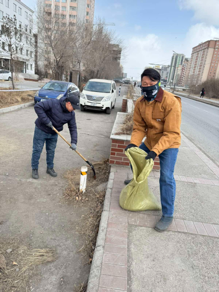 Нийслэлийн Засаг даргын 2025 оны 03 дугаар сарын 21-ний өдрийн “Хог хаягдал, орчны бохирдлыг бууруулах тухай зарим арга хэмжээний тухай” А/354 дүгээр захирамж болон Улаанбаатар хотын ерөнхий менежер бөгөөд Захирагчийн ажлын албаны даргын баталсан удирдамжийн дагуу “Улаанбаатар хотын тогтвортой авто зам, тээвэр” төсөл хэрэгжүүлэх нэгжийн 15 ажилтнууд хуваарилсан гудамж талбай болон ногоон байгууламж, авто зогсоол, явган замын хог хаягдлыг цэвэрлэлээ.