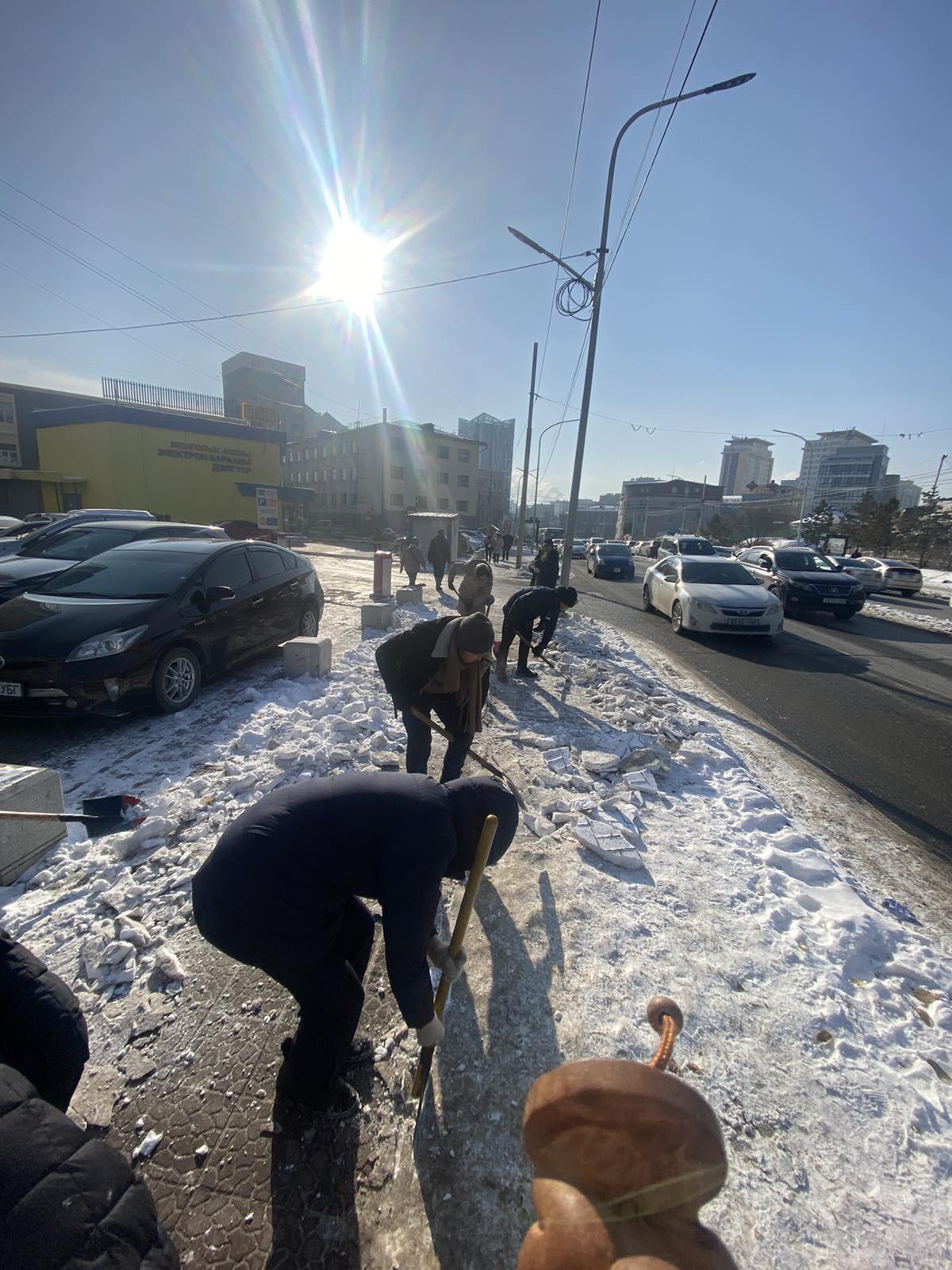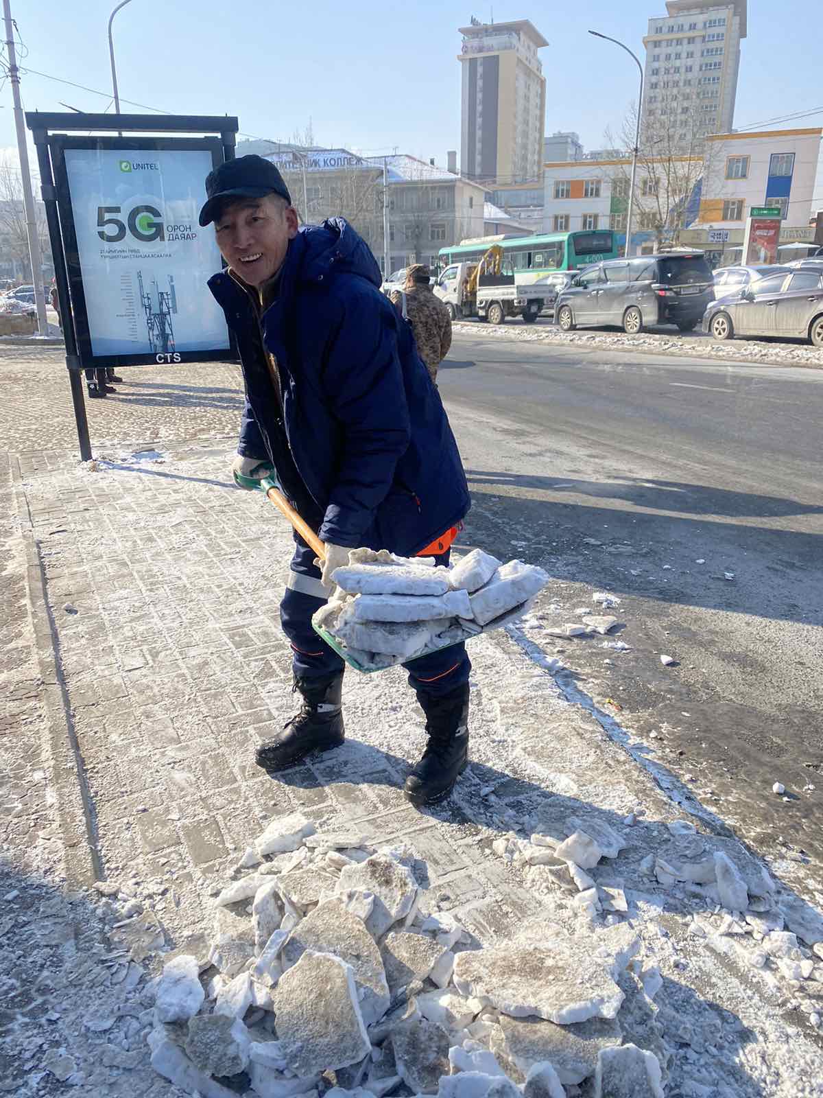 Улаанбаатар хотын захирагчийн ажлын албаны 2023 оны 11 дүгээр сарын 09-ний өдрийн шийдвэрийн дагуу, байгууллагын дүрмээр хүлээсэн чиг үүргийн хүрээнд нийтийн эзэмшлийн гудамж, явган хүний замын цас цэвэрлэгээний ажилд батлагдсан хуваарийн дагуу оролцож 2023 оны 11 дүгээр сарын 10-нд 12-16 цагийн хооронд УБХТАЗТ төсөл хэрэгжүүлэх нэгжийн ажилчид Баруун 4 замаас Бөмбөгөр хүртэлх гудамж, явган хүний замын цас, мөсийг цэвэрлэлээ.