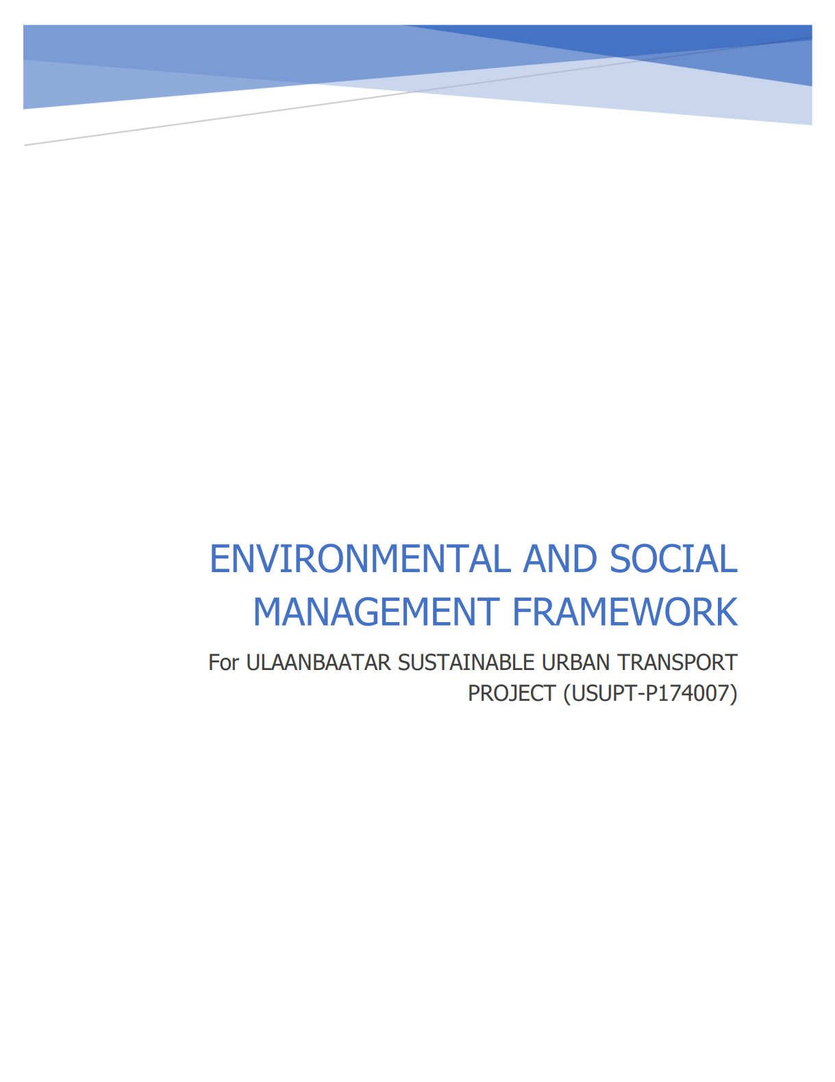 For ULAANBAATAR SUSTAINABLE URBAN TRANSPORT PROJECT (USUPT-P174007)